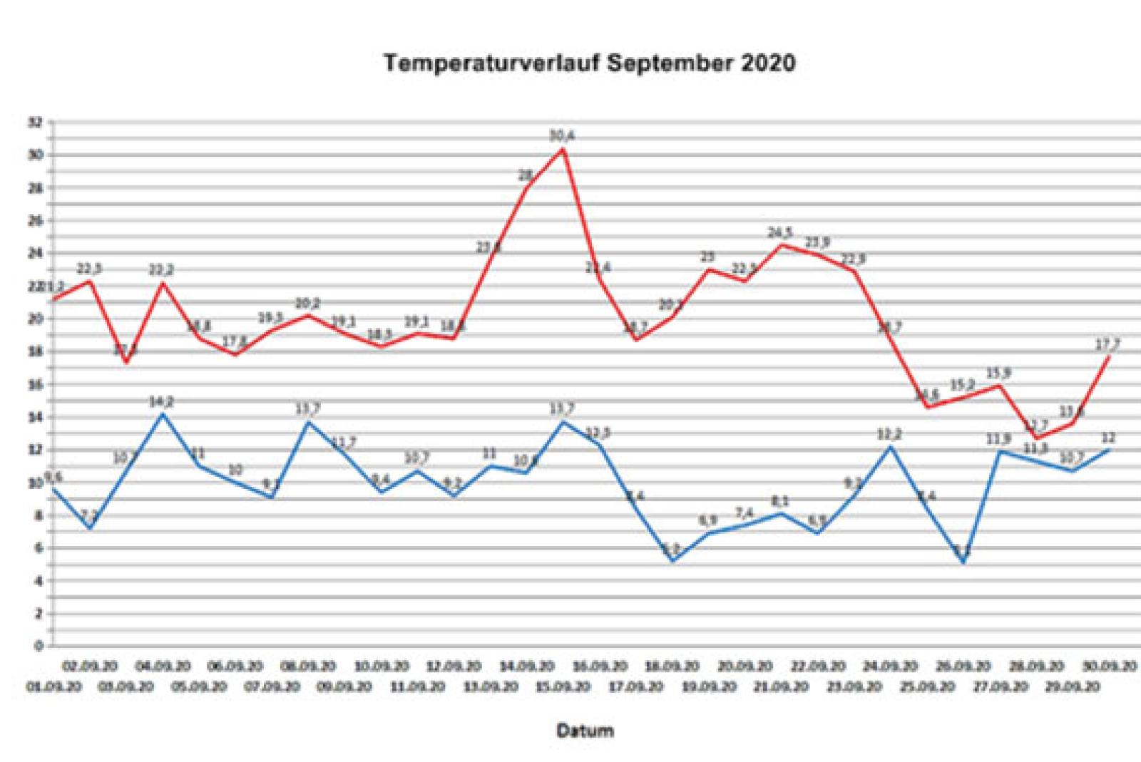 Zum Beginn des Septembers war das Wetter recht freundlich, es gab viel Sonne bei Temperaturen ...