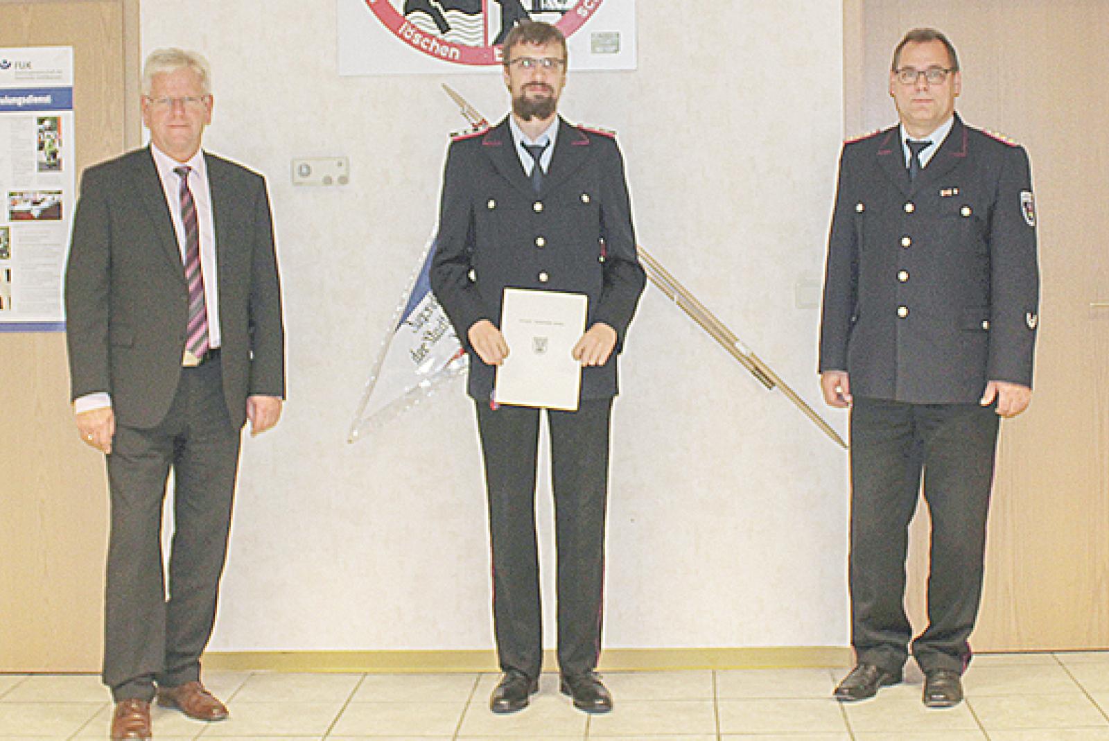 Michael Heeren hat jetzt während der Stadtkommandositzung in Diele seine Ernennungsurkunde als Ortsbrandmeister der Freiwilligen Feuerwehr Diele erhalten.