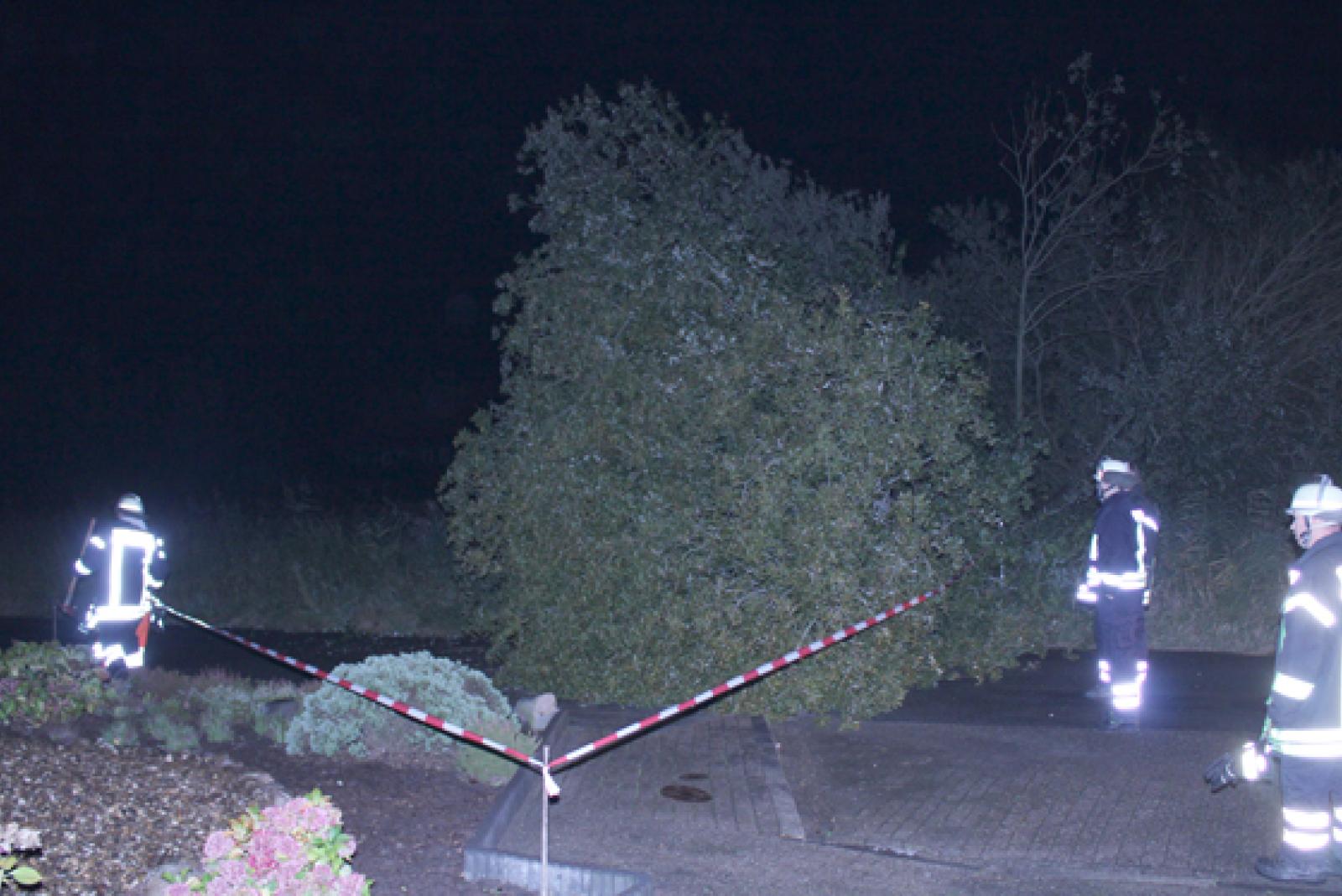 Um 3.37 Uhr in der Nacht wurde die Feuerwehr Weener zu einem Hilfeleistungseinsatz alarmiert, weil auf der Reginhardstraße in Weener ein Baum auf die Fahrbahn gestürzt war.