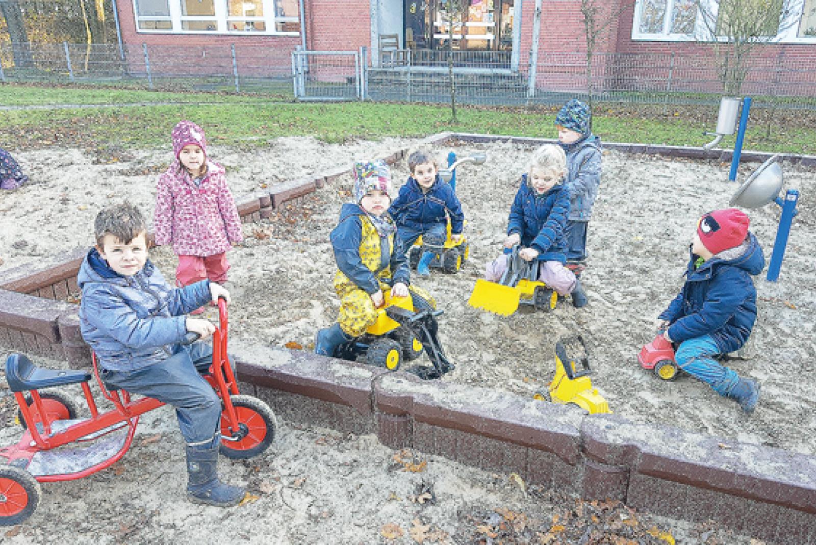 Eine Sandbaustelle und Holzpferde für den Kindergarten in Stapelmoor