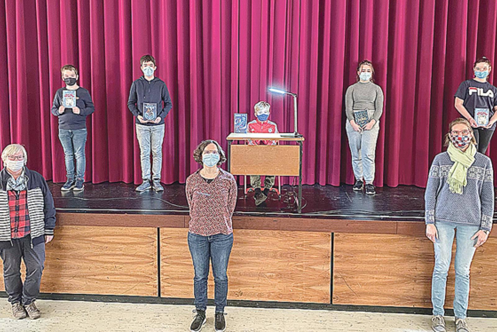Nervosität und Anspannung gehören zum Vorlesewettbewerb dazu. Doch in diesem Jahr durften die fünf Teilnehmer sogar auf der Bühne in der Aula ihre Texte vortragen. Raik Feenders holte sich den ersten Platz.
