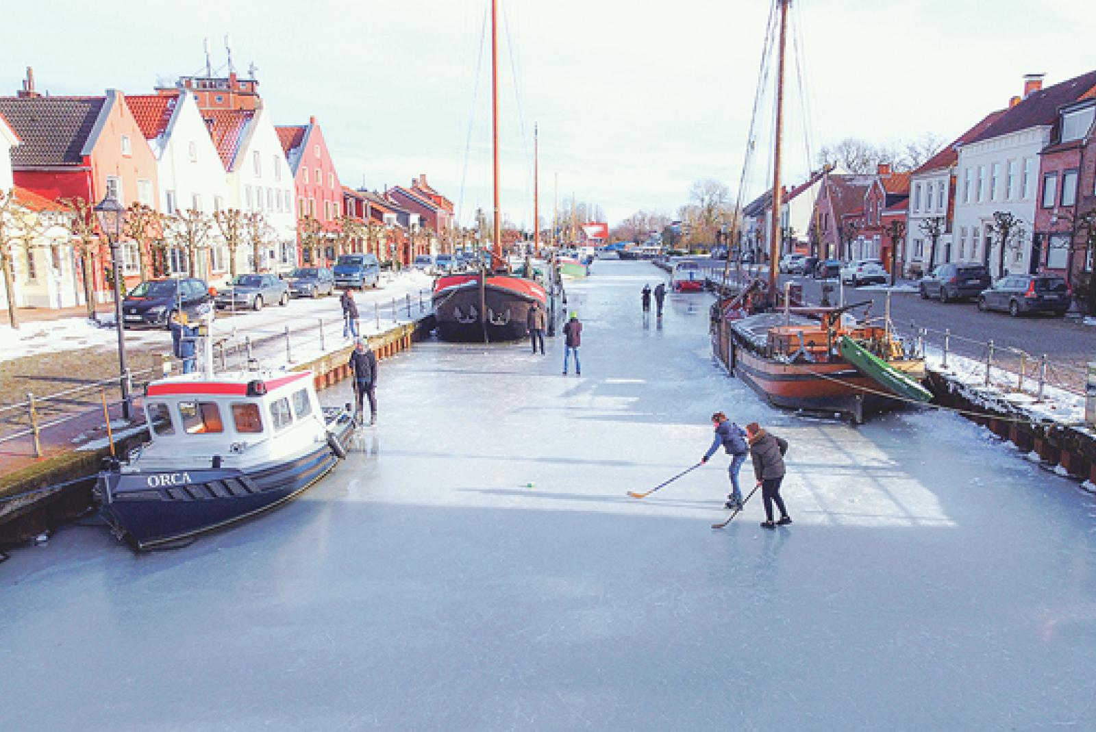 »Am Freitag haben wir hier schon getestet, ob das Eis auch trägt.« Frank Wolthuis freut sich, denn endlich nach nunmehr 15 Jahren geht er wieder vor seiner Haustür auf das glatte Eis im Alten Hafen von Weener.