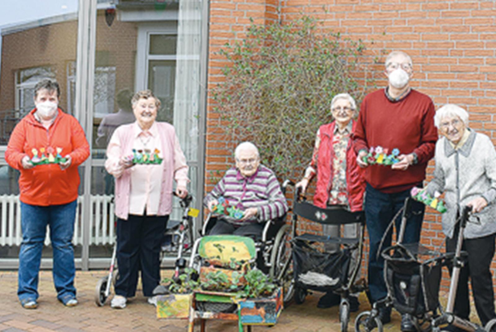 Der Kindergarten »Bunte Welt« hat dem Altenzentrum Rheiderland für den Naschgarten einen Früchtestuhl mit Erdbeeren bepflanzt. Der regelmäßige Besuch vom Kindergarten kann momentan leider nicht stattfinden. Trotzdem wird die Verbundenheit durch kleine Aufmerksamkeiten. Das Foto zeigt ...