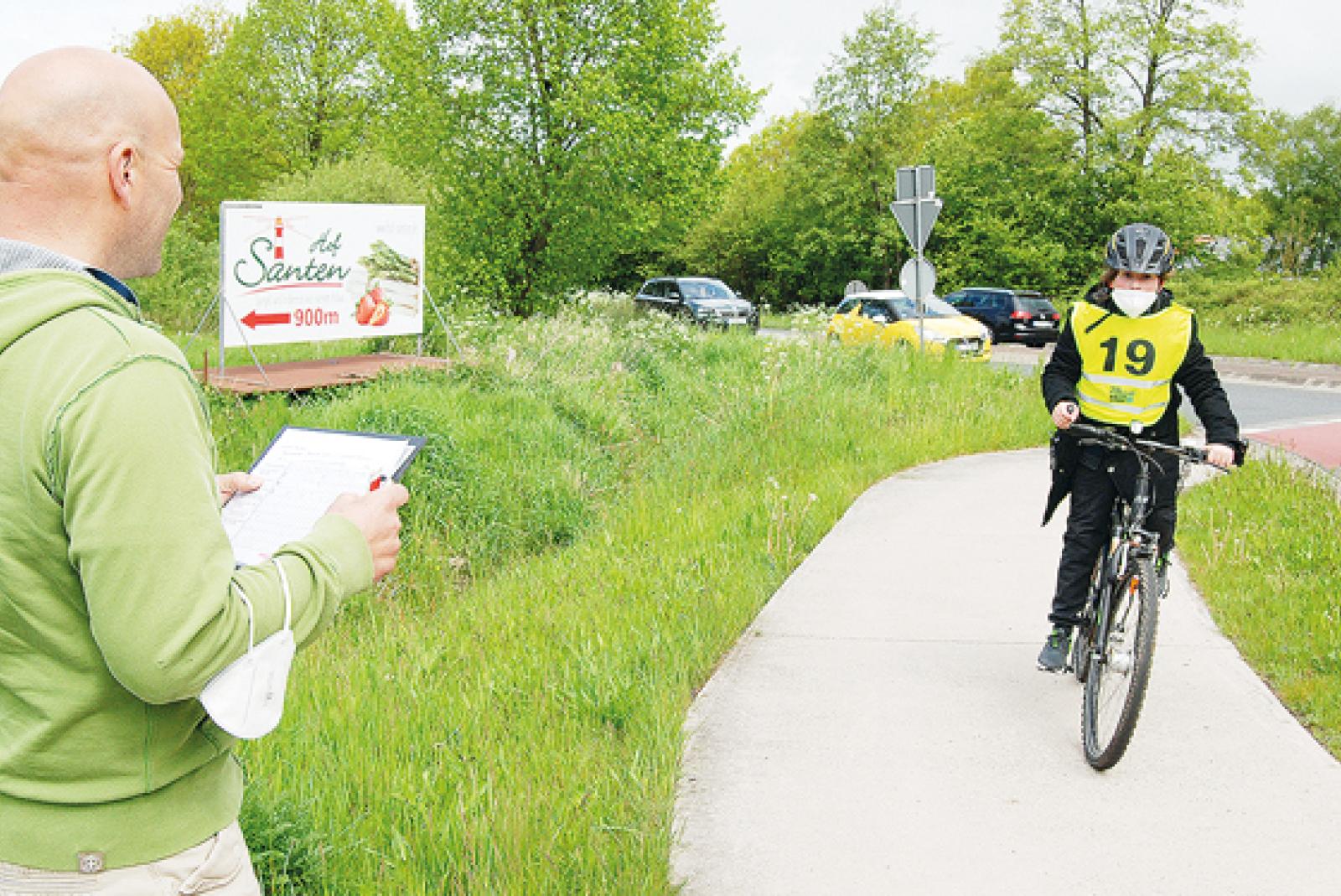 »Es geht um das richtige Verhalten am Kreisel in Stapelmoor«. Jan Schade aus Halte hatte sich am Freitag gut zweieinhalb Stunden mit einem Klappstuhl und einem Klemmbrett mit Wertungsbogen am Kreisel postiert, denn die Fahrradprüfung für die 19 Schü...
