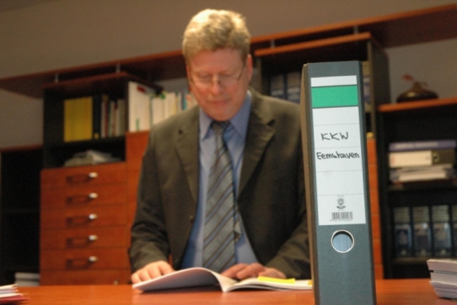In seinem Büro im Rathaus studiert Bürgermeister Johann Tempel die Unterlagen zum Klageverfahren gegen das Kohlekraftwerk in Eemshaven. © Foto: Szyska