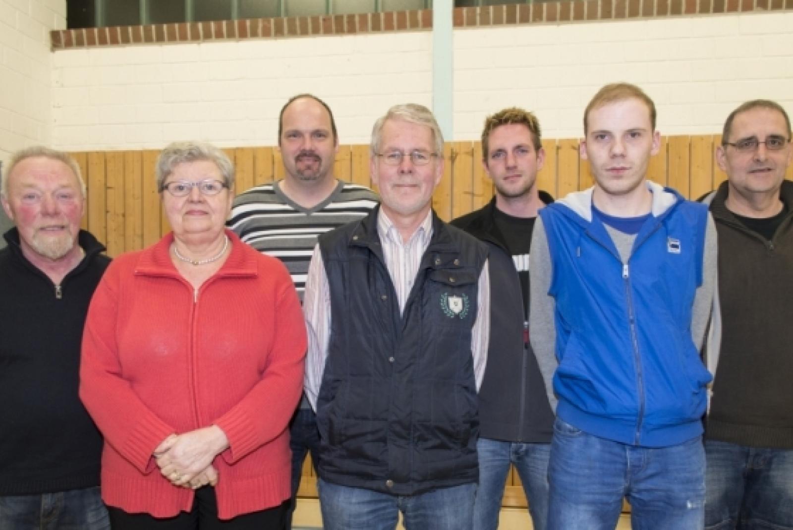 Das Vorstandsteam des Heidjer SV: (von links) Manfred Koenen (2. Vorsitzender), Marianne Vesseur (Sozialwartin), Detlef Meints (Schriftführer), Renhard Roelfsema (1. Vorsitzender), Ingo Groen (Fußballobmann), Martin Hut (Gerätewart) und Wilfried Bröker (Kassenwart). © Mentrup
