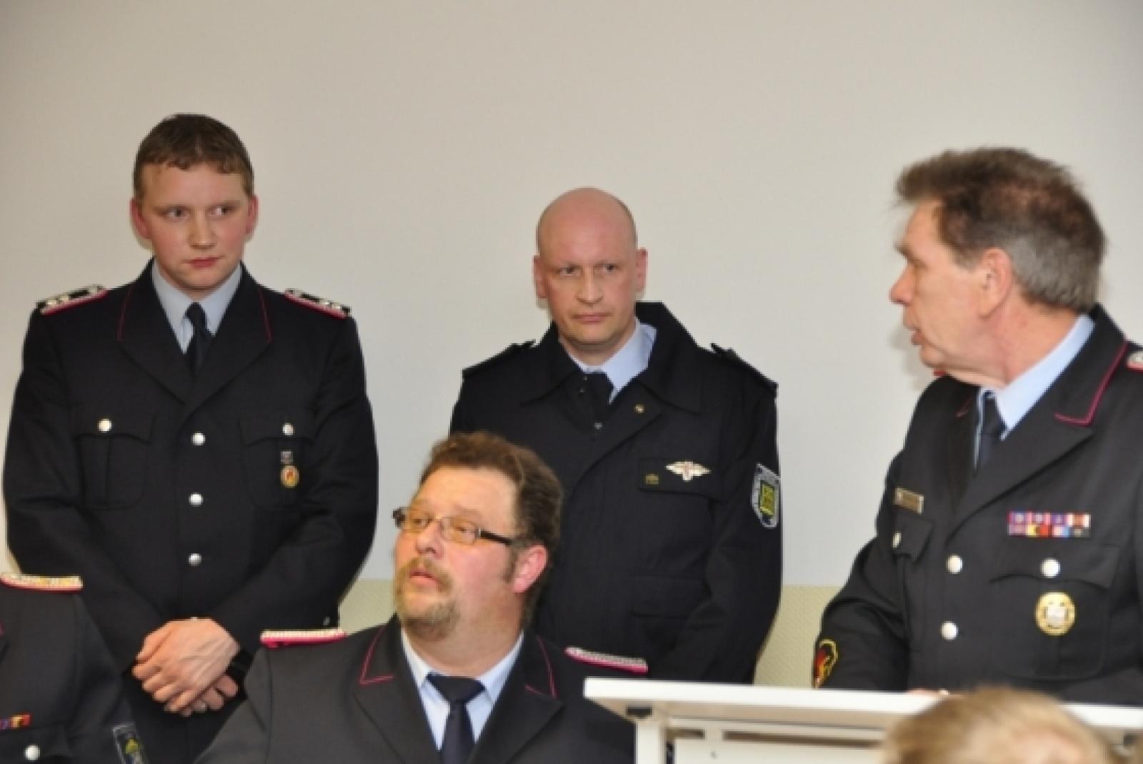 Johann Bödeker aus Weenermoor und Stephan Hilbrands aus Holtgaste (Mitte) wurden beim Kreisjugendfeuerwehrtag durch den stellvertretenden Landesjugendfeuerwehrwart Martin Schilling (rechts) für ihre engagierte Jugendarbeit ausgezeichnet. © Foto: Wolters