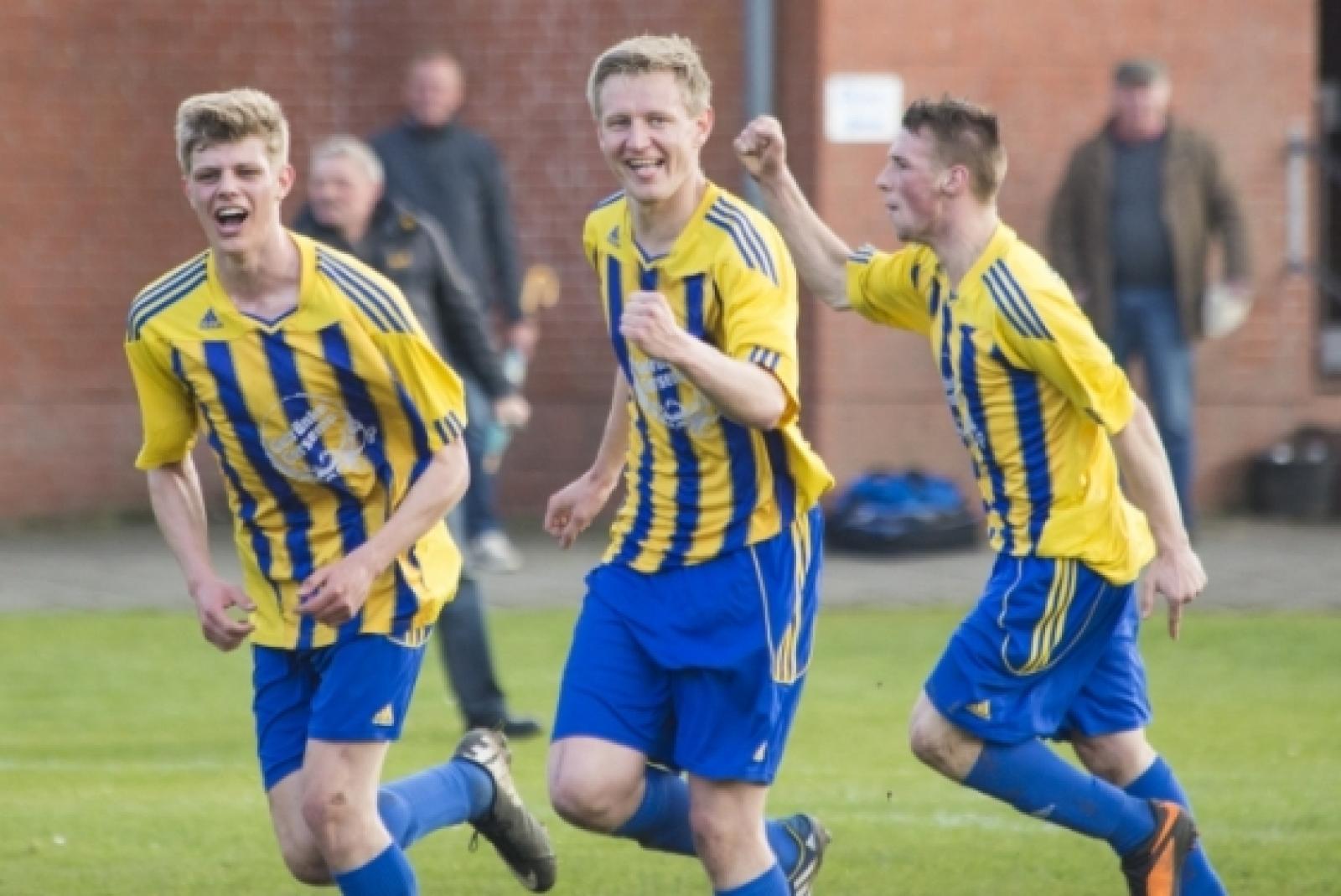 Späte Freude: Niklas Busemann, Torschütze Markus Janssen und Timo Zillmer (von links) jubeln über den Treffer zum 2:2. © Foto:Mentrup