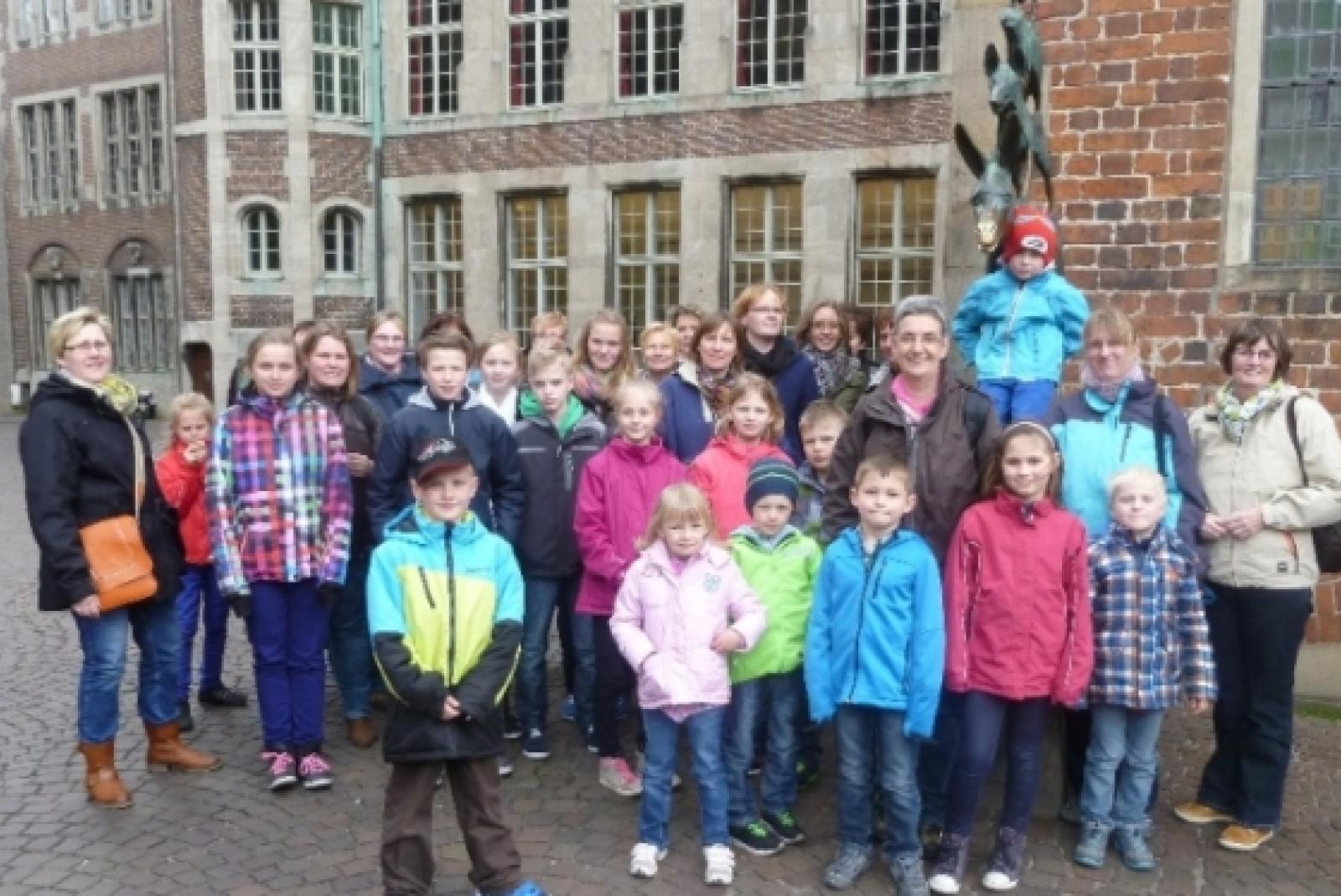 Zu Besuch bei den Stadtmusikanten: Die Junior-Mitglieder der Jemgumer Landfrauen erlebten einen ereignisreichen Tag in Bremen. © privat