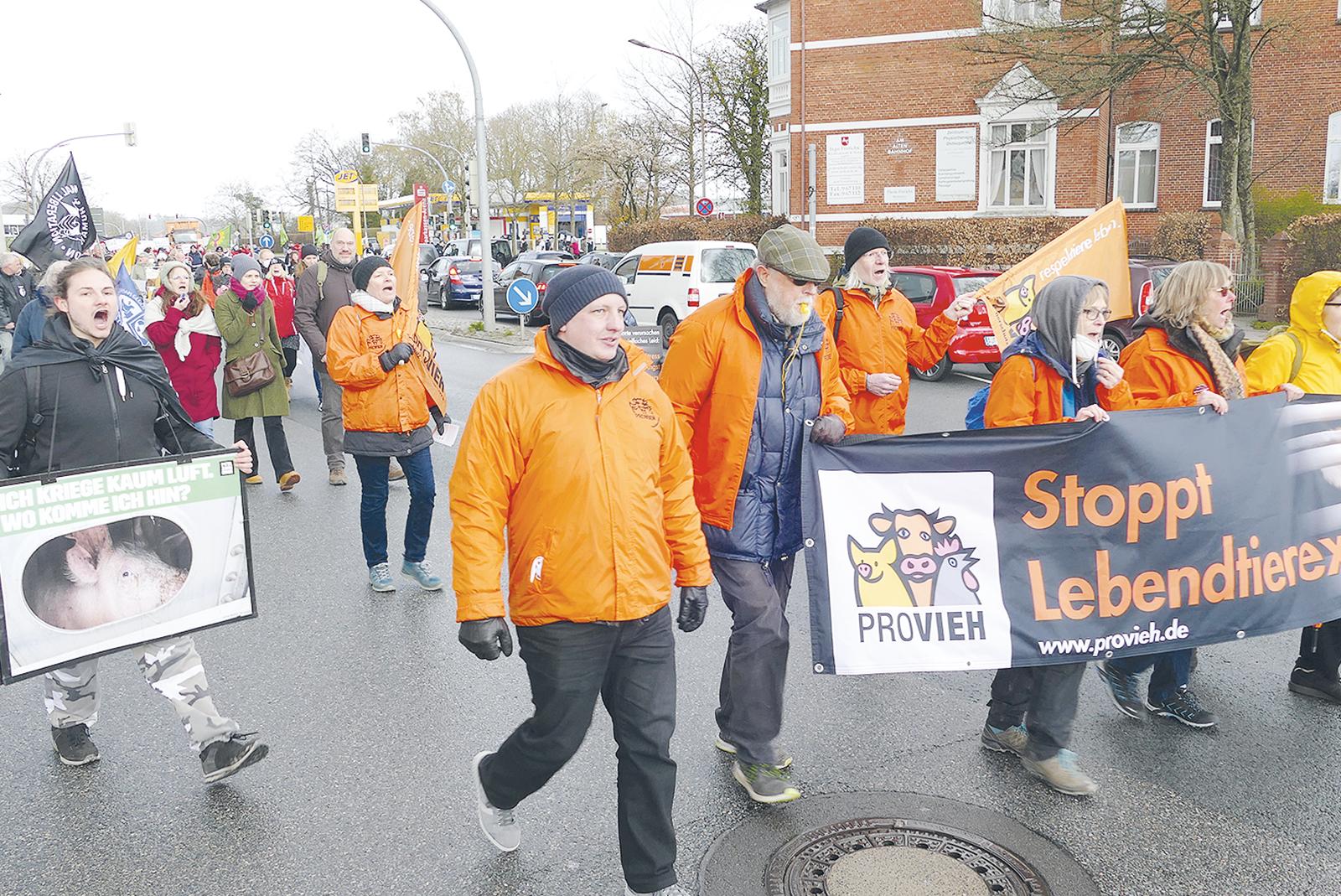 Selbst von zwischenzeitlichen Hagel- und Regenschauern ließen sie sich nicht beirren. Nach Angaben der Veranstalter waren es am Ende rund 400 Menschen, die sich am Sonnabend vor dem Auricher Rathaus versammelten, um gegen grausame Tiertransporte zu protestieren.