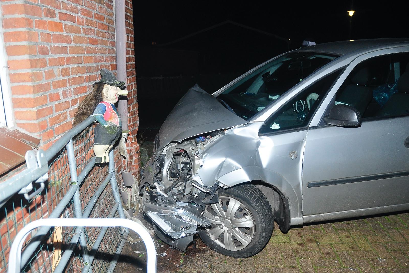 Gegen eine Hauwand krachte ein Auto in Hatzum. © Wolters