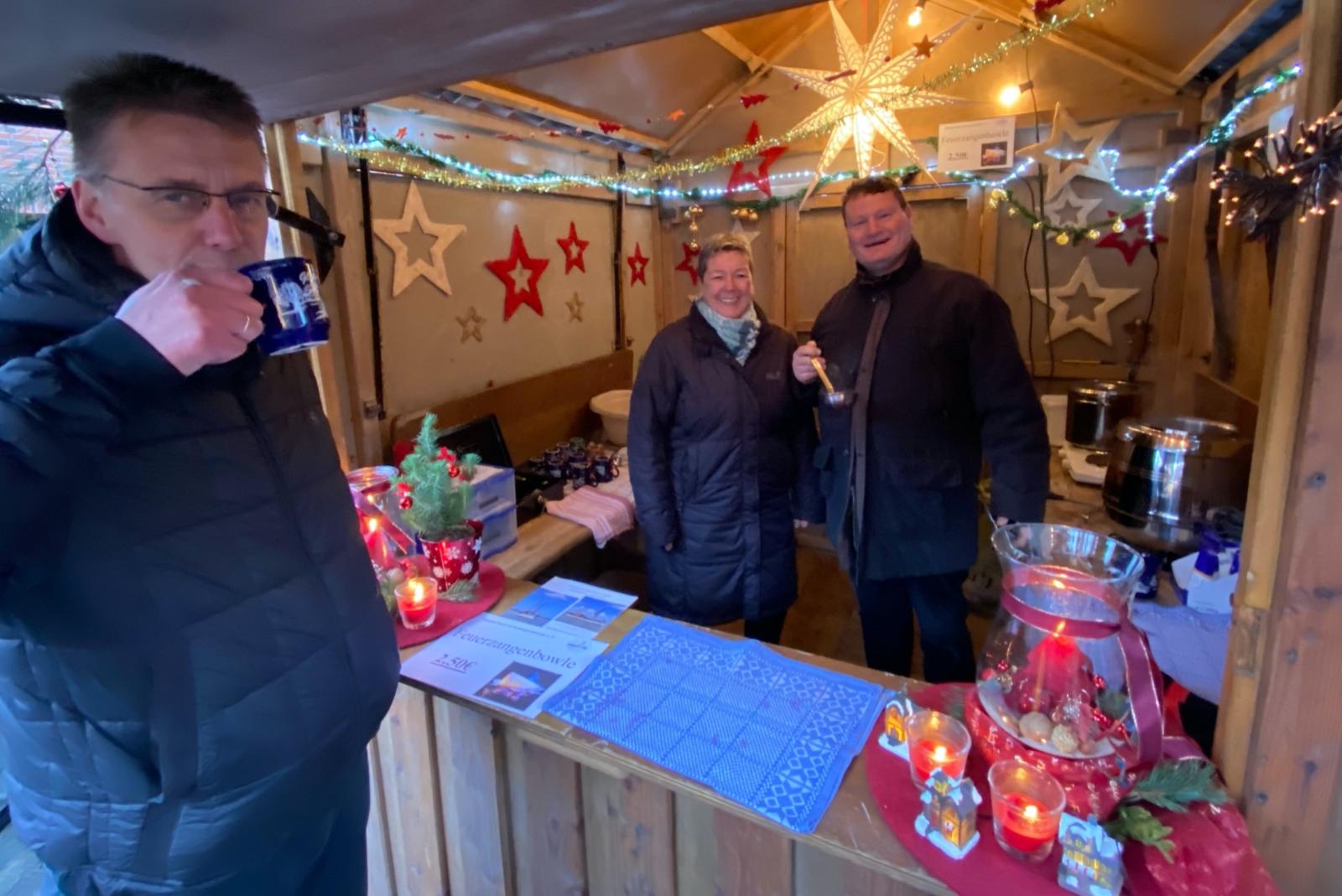 In Ditzum gab es den würzigen Glühwein auch bei der Ditzumer Haven- un Kuttergemeenskupp, am Stand waren (von links) Johann Robbe, Ute Grün und Gerjet Bültjer.  © Fotos: Kuper