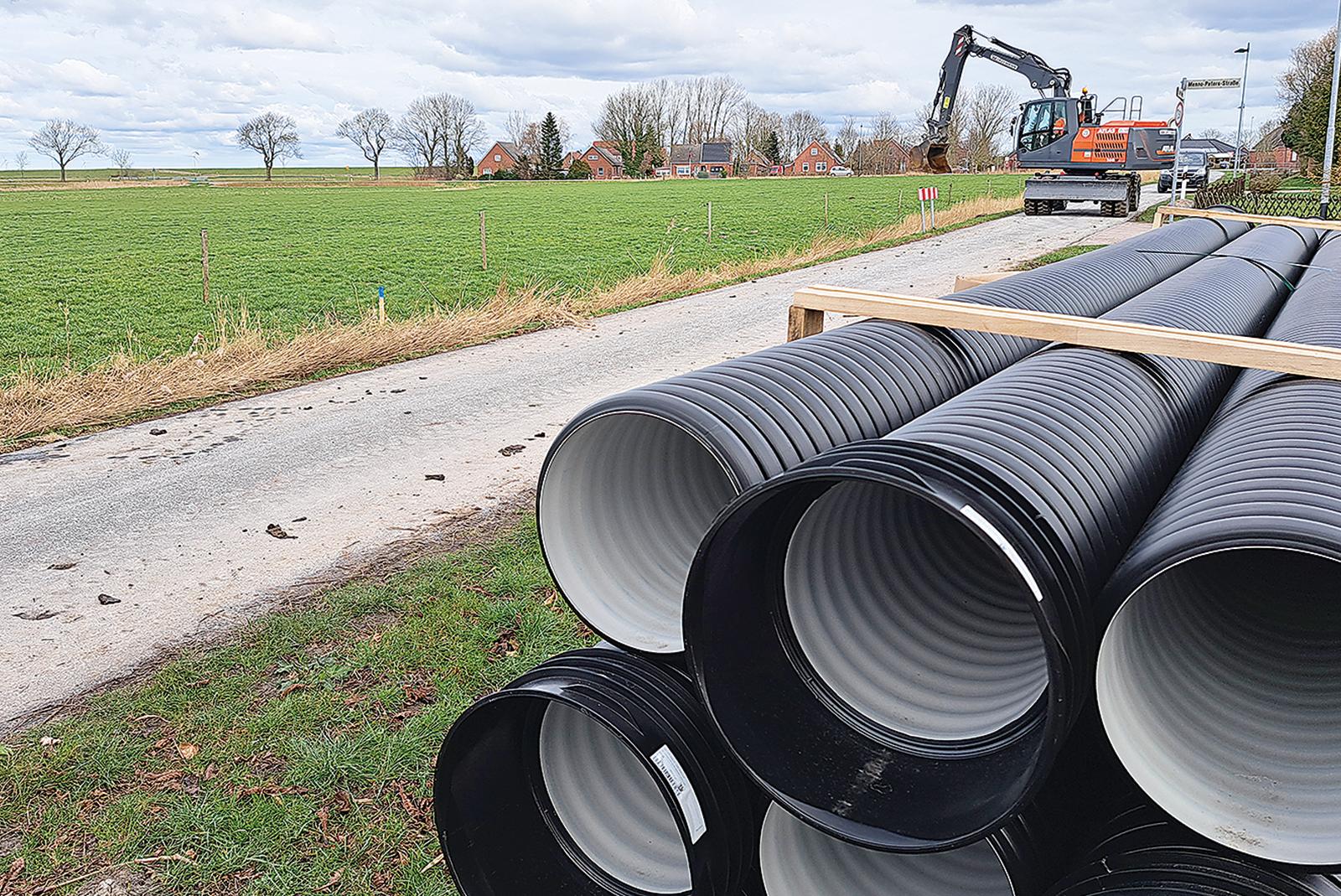 Das Tiefbauunternehmen Würdemann aus Ostrhauderfehn ist seit gestern mit Baggern im Einsatz, um den Toten Weg zu verbreitern. © Foto: Szyska