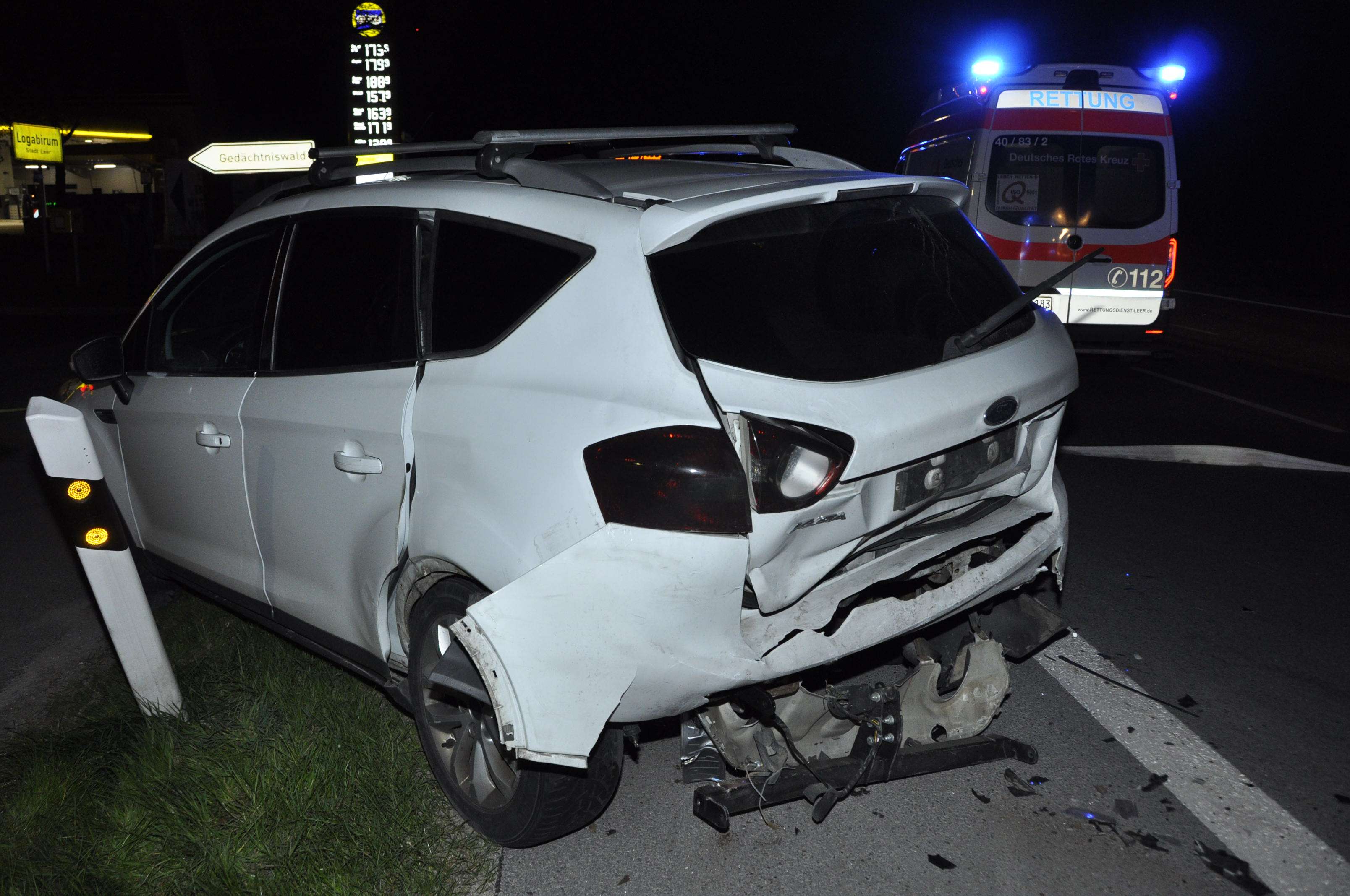 "Die Insassen des VW Passat konnten durch das schnelle Handeln von Ersthelfern sofort aus dem Fahrzeug befreit werden. Wenige Momente später stand der Wagen bereits in Vollbrand", schreibt die Feuerwehr. Die Polizei teilt dazu ergänzend heute mit, dass der Fahrer des Kuga (ein 35-jähriger ortsunkundiger Mann aus Rumänien) in Höhe der Zoostraße abgebremst habe, um in die dortige Einmündung einzubiegen. Der nachfolgende Passat-Fahrer (ein 18-jähriger Moormerländer) erkannte das zu spät und fuhr auf.