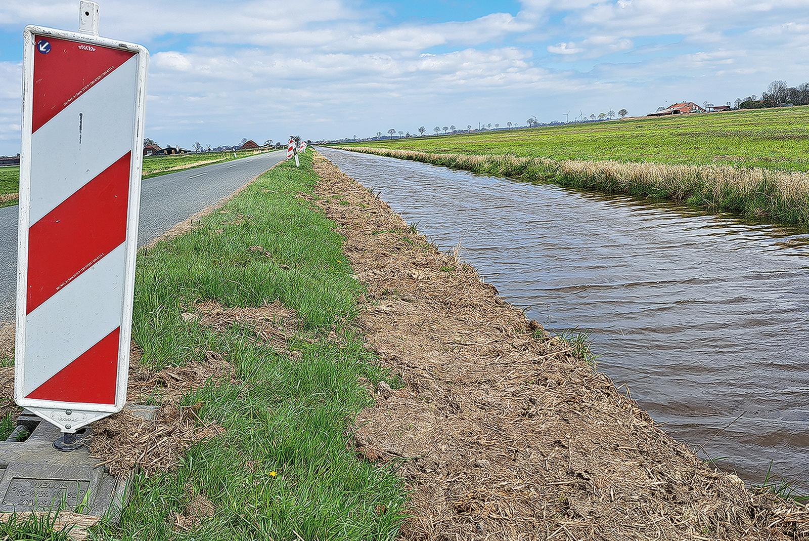 Die Beseitigung von Auskolkungen im Jemgumer Sieltief entlang des Dukelwegs (Kreisstraße 38) zwischen Marienchor und Böhmerwold steht vor dem Abschluss.