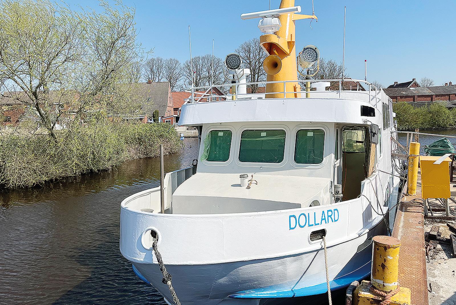 Das Fahrgastschiff MS Dollard an seinem Liegeplatz auf der Diedrich-Werft in Oldersum.  © Foto: Internationale Dollard-Route