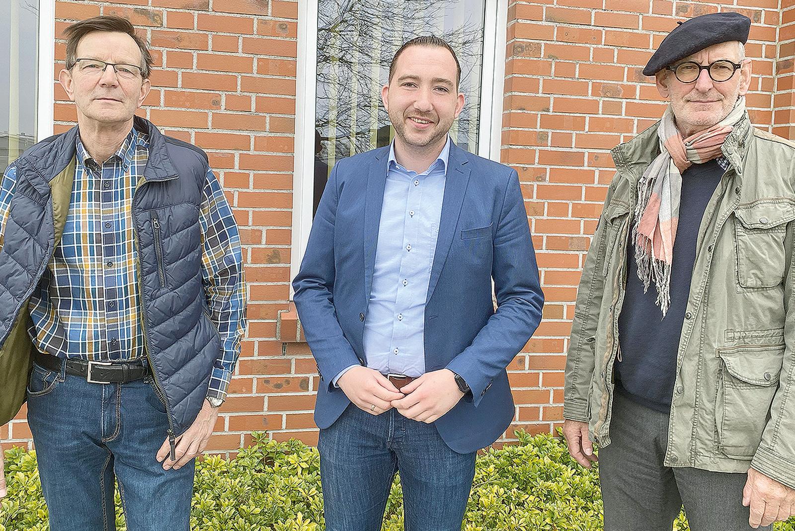 Vor dem Gebäude der Deich- und Sielacht Rheiderland in Soltborg: Von links Obersielrichter Willem Berlin, SPD-Landtagsabgeordneter Nico Bloem und Oberdeichrichter Meint Hensmann. © Foto: privat