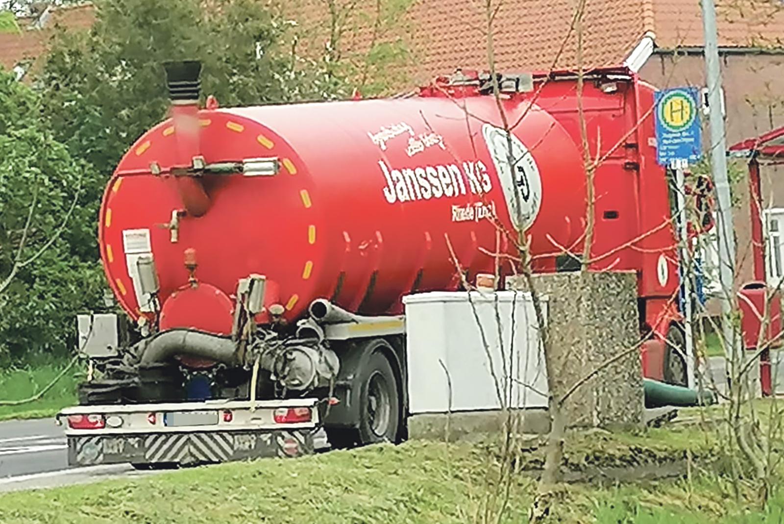 Vor einer Woche in Pogum: Aus dem Gülletank eines Lkw wurde wieder Abwasser zum Klärwerk bei Ditzum gepumpt, um das Hauptpumpwerk in Jemgum zu entlasten. © Foto: privat