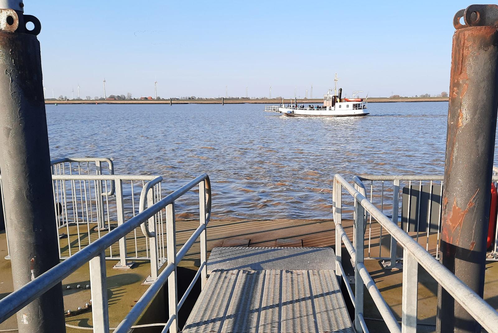 Die letzten beiden Fahrten der Emsfähre am heutigen Freitag (18.30 ab Ditzum und 19 Uhr ab Petkum) fallen tidebedingt aus. Am Sonntag können die ersten Fahrten (9 Uhr ab Ditzum und 9.30 Uhr ab Petkum) nicht stattfinden.    © Szyska