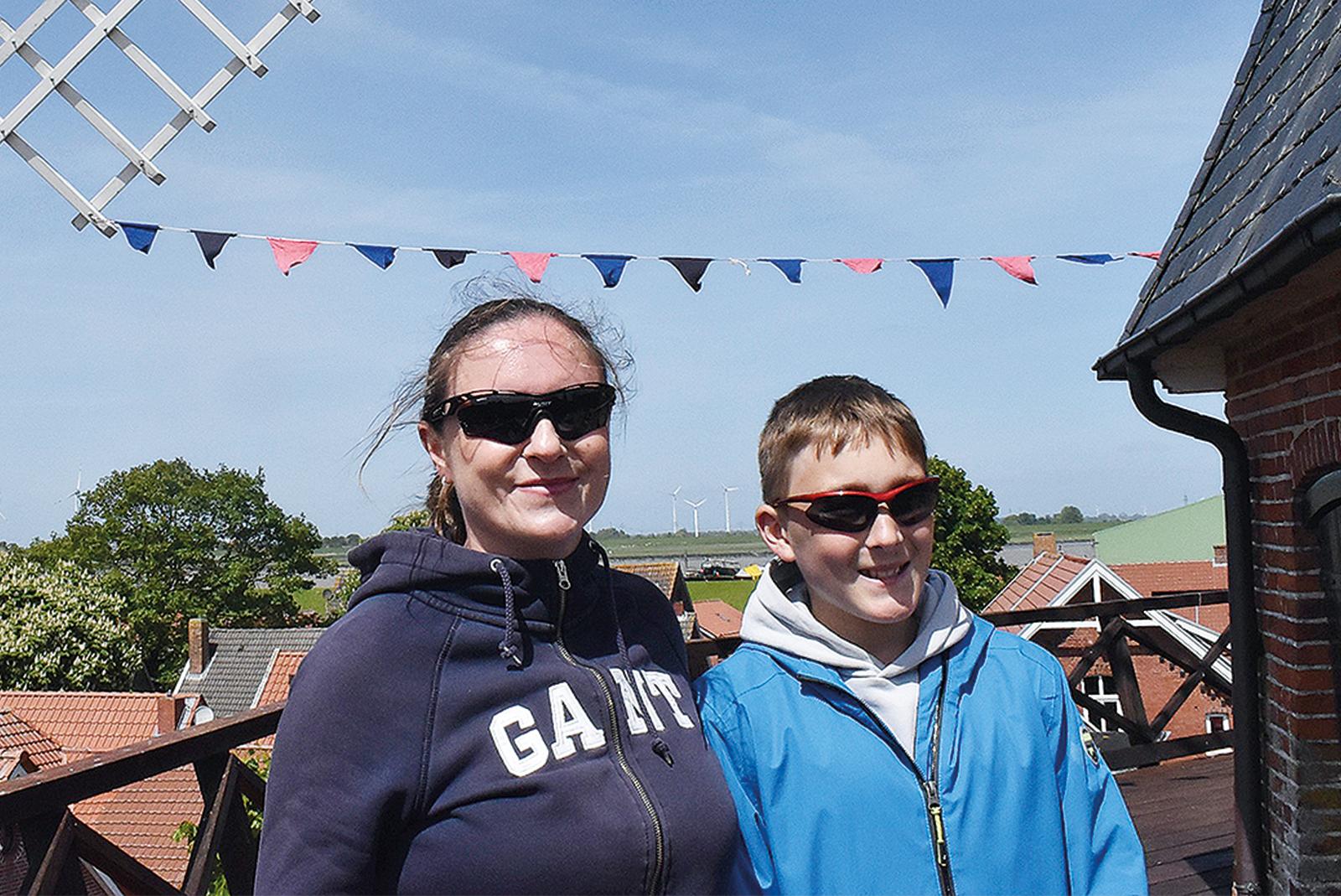 Den Blick auf das grüne Rheiderland und die vorbeifließende Ems genossen gestern Barbara und ihr Sohn Jacob aus Leer vom »Balkon« des Galerieholländers in Ditzum. Anlass für die Tour in das Rheiderland war der traditionelle Mü...