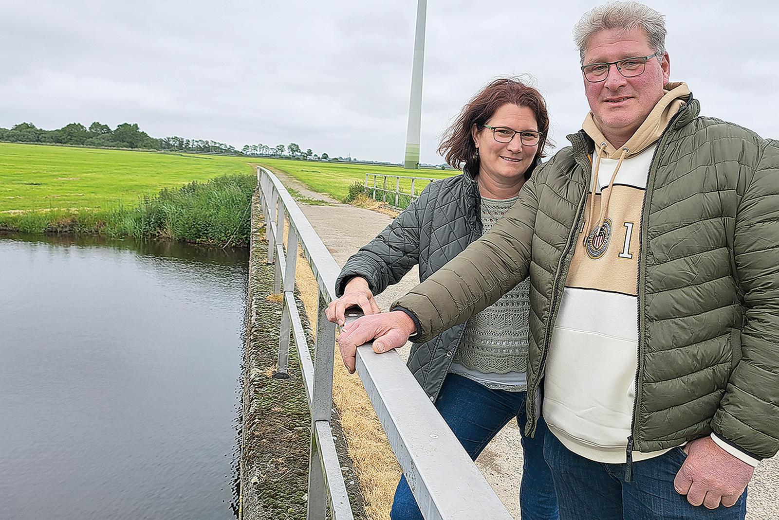 Die Brücke, auf der Maike und Enno Janssen am Geländer stehen, führt geradewegs zu den Weiden, auf denen das Ehepaar zukünftig den »Solarpark Holtgaste« betreiben möchte. Auf rund 180.000 ...