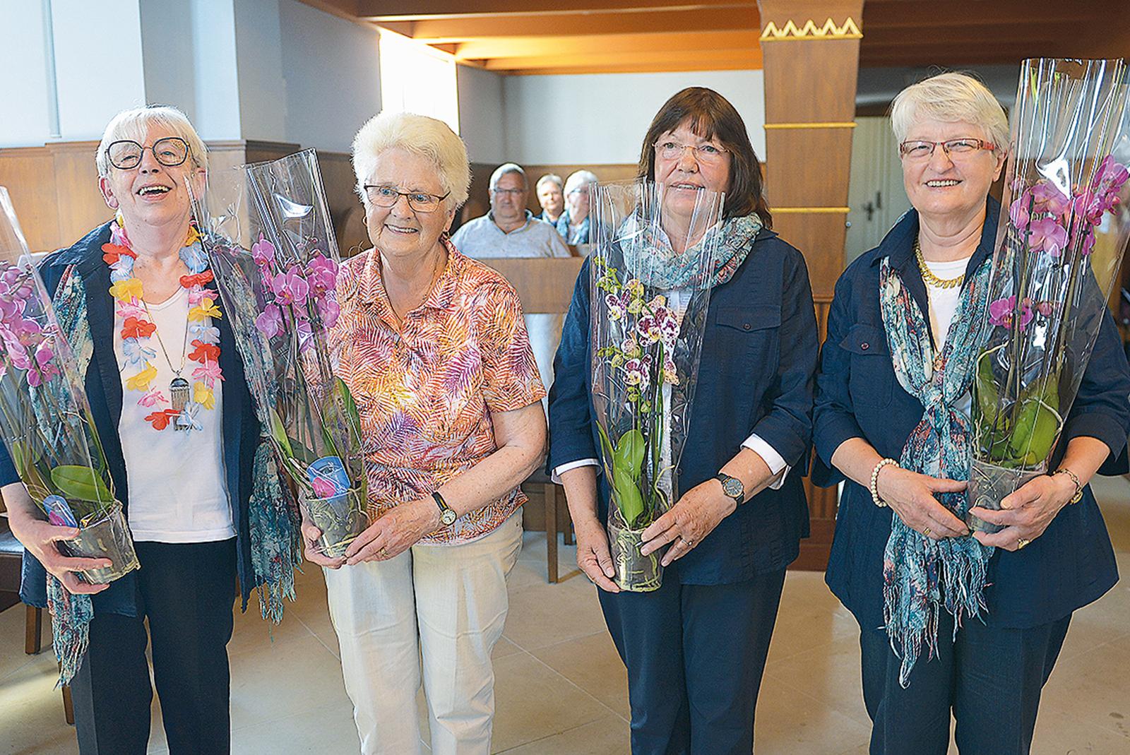 Ehrungen für die Gründungsmitgliederinnen Ette Remmers, Anna Broers, Netti Gottwald und Hanna Lübbers (von links). Es fehlte Therese de Wall, der ebenfalls dazugehört. © Fotos: Wolters