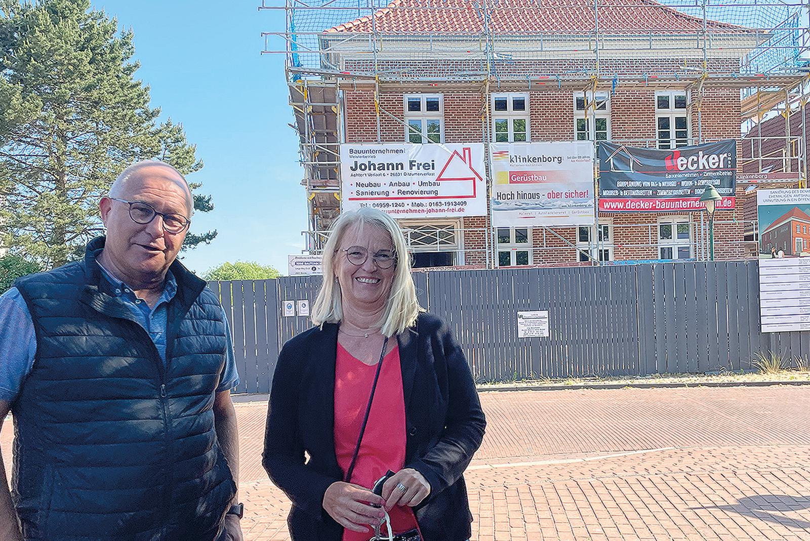 »Das Gebäude ist nicht wiederzuerkennen«, sagte Bürgermeister Hans-Peter Heikens nach der Bauesprechnung mit Architektin Meike Seidler. © Foto: Gemeinde