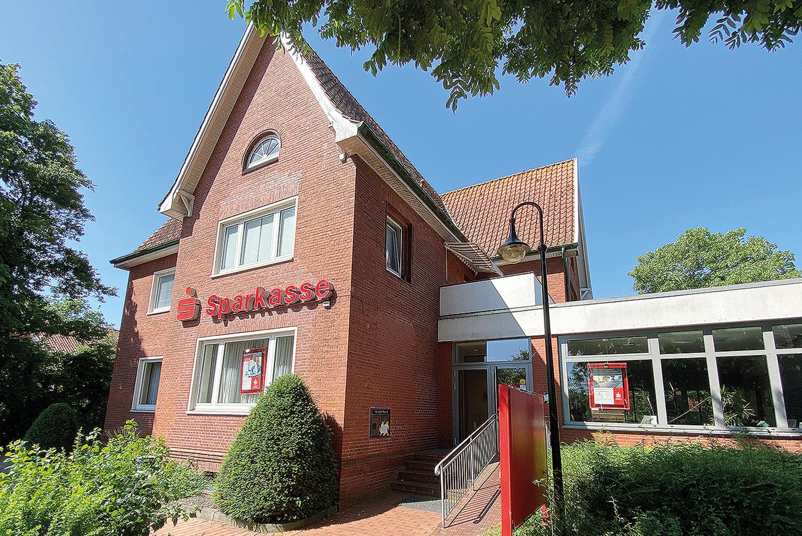 Die Sparkassen-Filiale in Jemgum. Das Gebäude soll nun verkauft werden.  © Foto: Hanken