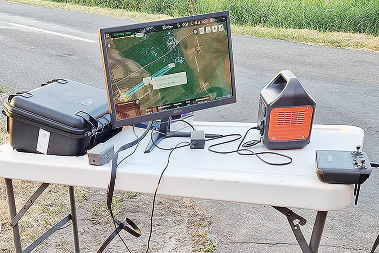 Mithilfe einer Drohne, deren Flug über einen Bildschirm kontrolliert wird, wurde in Böhmerwold ein Feld nach Rehen abgesucht. © Foto: privat