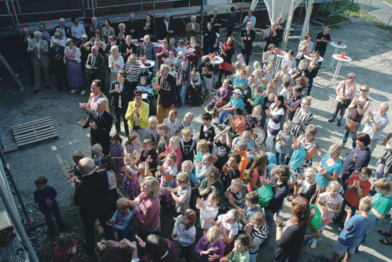 Rund 150 Gäste wollten am Mittwoch das Richtfest der Förderschule der Spastikerhilfe in Bingum erleben. Neben Politikern und Honoratioren standen die Schüler der Förderschule und der Grundschule im Mittelpunkt. Die beiden Schulen wollen eng kooperieren.