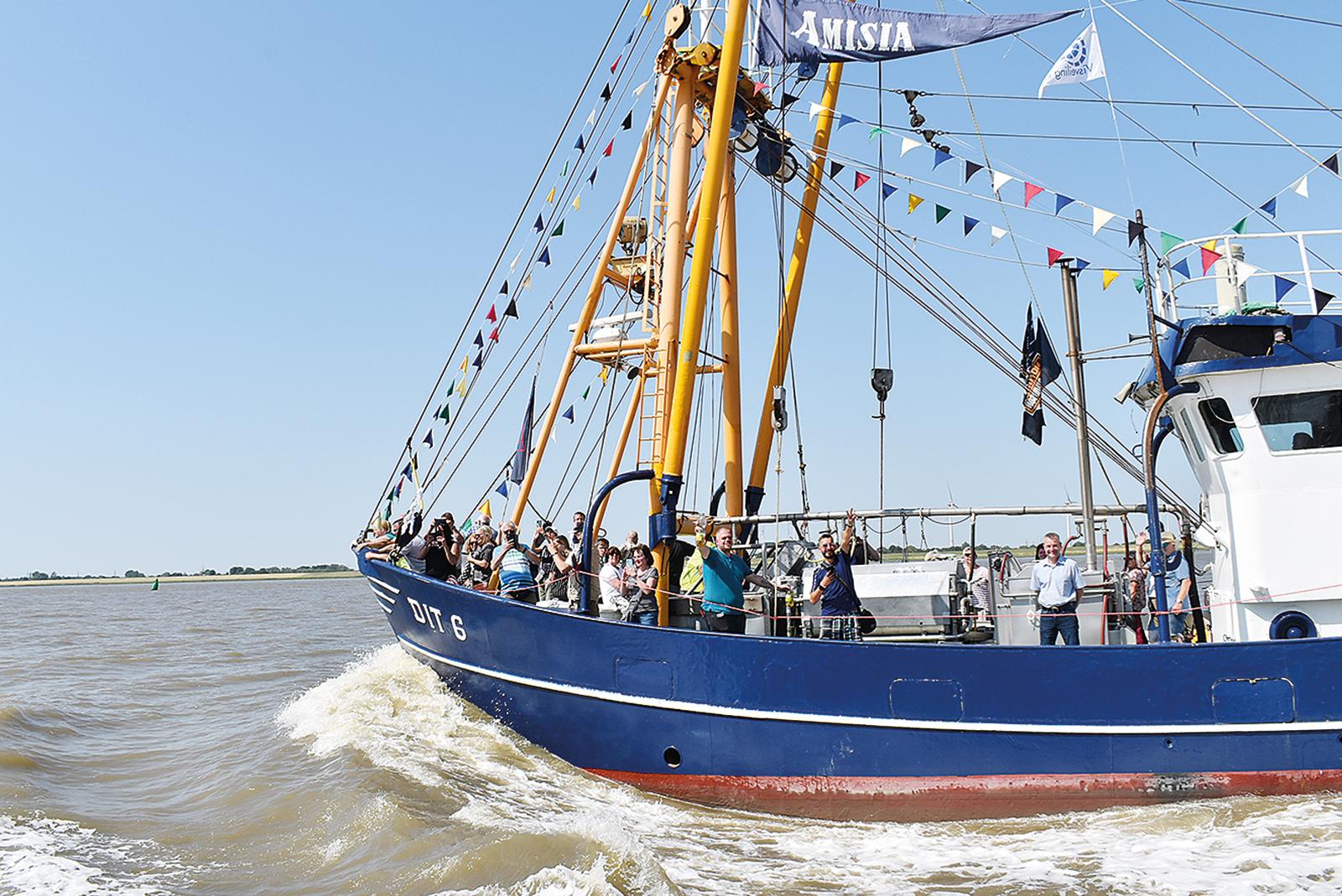 Wenn eine Flotte farbiger Fischkutter mit voller Kraft das sommerlich-träge Wasser der Ems aufwühlt, kann das nur eins bedeuten: In Ditzum ist Hafenfest. Die 1996 von Julius Diedrich in Oldersum gebaute dunkelblaue »Amisia« (DIT 6) war am Sonnabend eine von ...