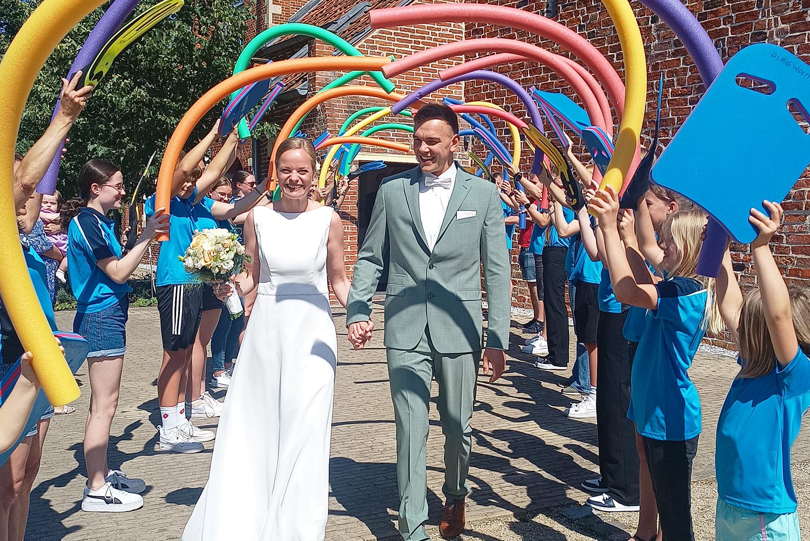 Hanna und Jannes Nordbrock gaben sich am Freitag in der vergangenen Woche das Ja-Wort im Steinhaus in Bunderhee. Beide lernten sich beim Training der DLRG Weener kennen und lieben. Und so war es kein Wunder, dass viele Kinder und Jugendliche ...