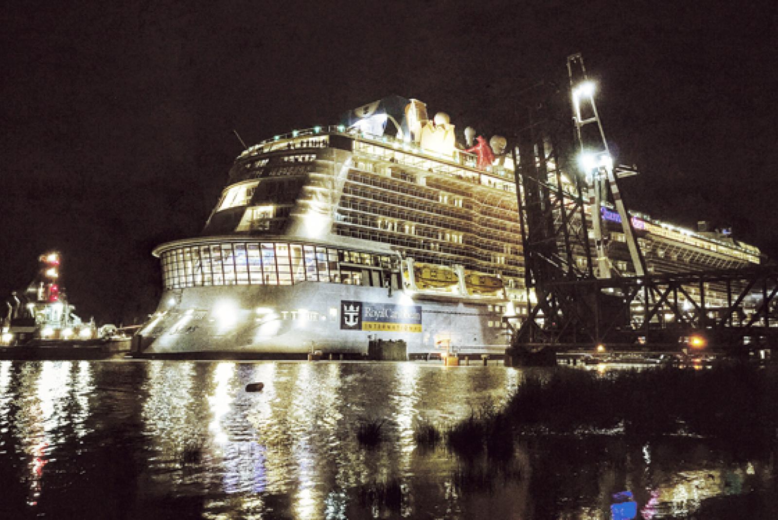Die Flussfahrt der »Quantum of the Seas« geriet zu einer Schleichfahrt: Mit massiven Verzögerungen ging die Ems-Passage des Meyer-Luxusliners am Montagabend vonstatten. Erst um etwa 21.30 Uhr passierte das Schiff die Friesenbrücke. Die Jann-Berghaus-Brücke wurde um nach Mitternacht erreicht. Die Folge: Der Ozeanriese konnte nicht, wie geplant, in der Nacht das Emssperrwerk zwischen Nendorp und Gandersum passieren. Dieses »Schlupfloch« soll nun heute Mittag zwischen 11 Uhr und 12 Uhr passiert werden.