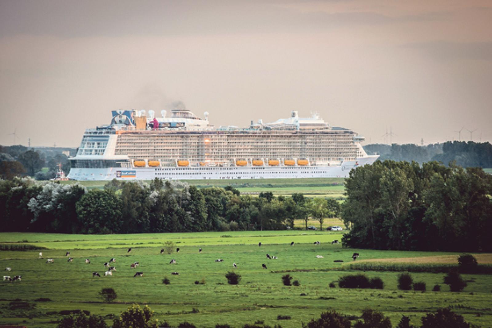 Zuweilen wird die Ems als »Geburtskanal« für die Meyer-Kreuzfahrtschiffe bezeichnet. Wenn dem so ist, dann war die Flusspassage des neuen »Babys« eine im wahrsten Sinne des Wortes schwere Geburt. Mit mehr als zwölfstündiger Verspätung hat die »...