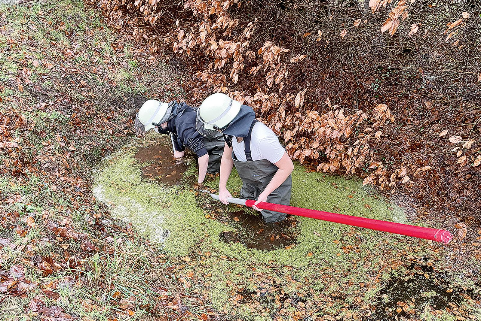 Die Feuerwehr muss die verstopften Gräben häufig reinigen. Die Gemeinde Jemgum führt bald Kontrollen durch. © Foto: Feuerwehr