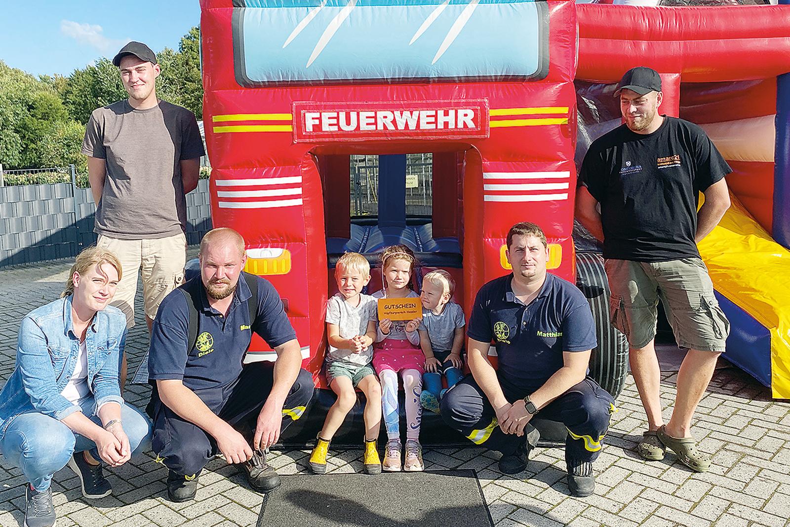 Zum Kinderfest der Freiwilligen Feuerwehr am Sonnabend in Diele gehörten nicht nur die Bewirtung und Fahrten mit dem Löschfahrzeug, sondern auch eine Verlosung. Der Hauptgewinn - ein Gutschein von Hüpfburg Verleih Hassler - ging an Mia (Mitte). ...