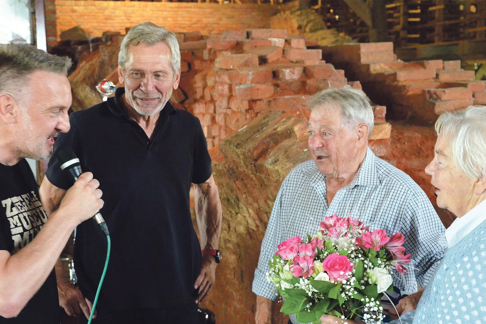 Presse- und Schriftwart Kai-Uwe Hanken überreichte gemeinsam mit dem Vorsitzenden Wilfried Voss neben Geschenken auch einen Blumenstrauß an den langjährigen Ziegler Paul Zimmer und dessen Frau Käthe (von links). © Fotos: Ammermann