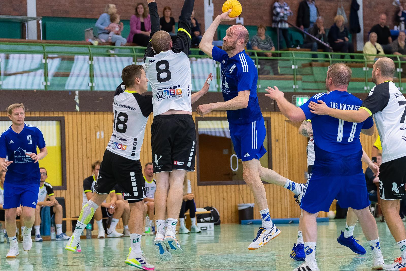 Jörg von der Recke (am Ball) trug mit sechs Toren zum Sieg der Holthuser gegen den Wilhelmshavener SSV II bei. © Jungeblut