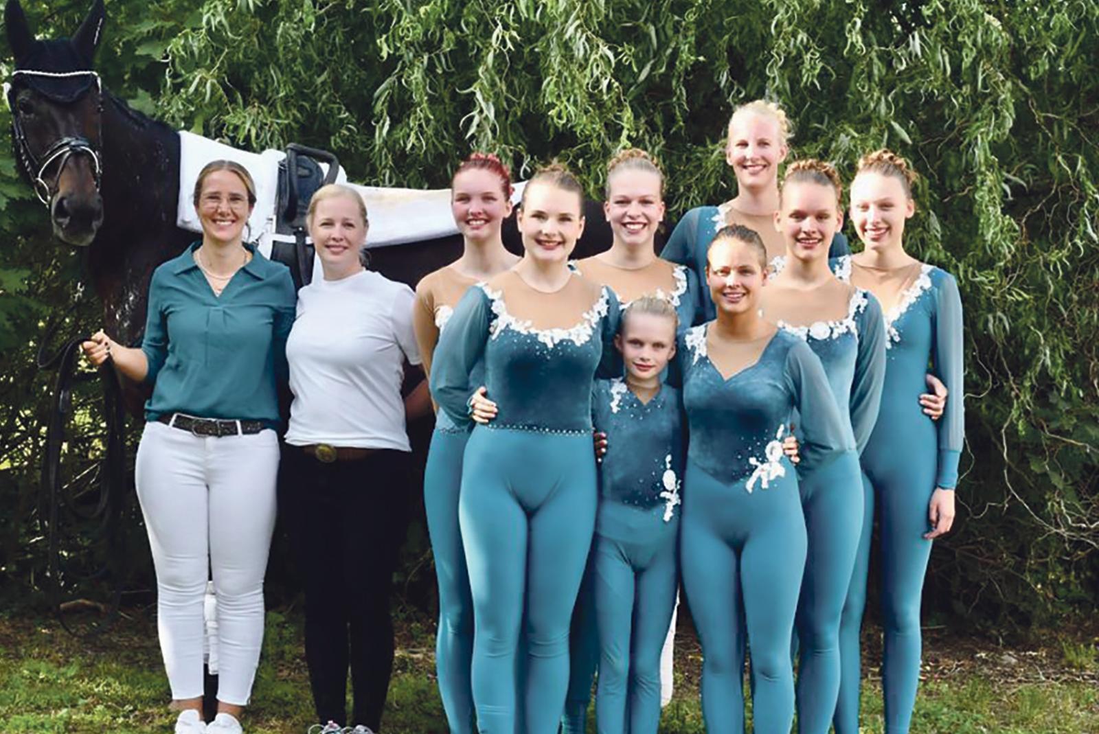Die L-Gruppe der Voltigiererinnen starteten bei den Nordostdeutschen Meisterschaften in Krumke, Sachsen-Anhalt.  © Foto: privat