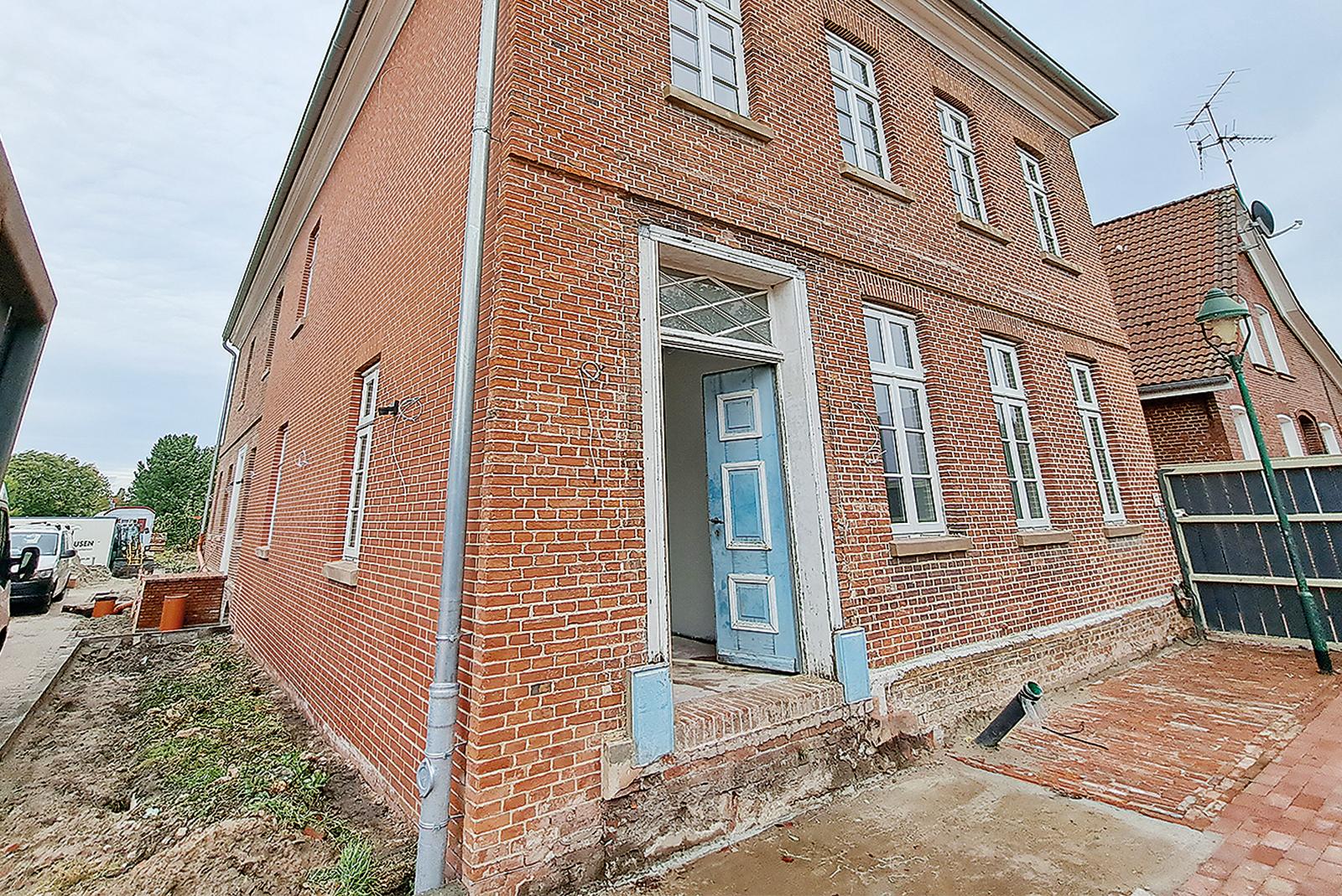 Nach dem Wiener Kongress 1814/15 musste Preußen Ostfriesland an das Königreich Hannover abtreten. Um den Bürgern lange Wege zur Verwaltung nach Emden zu ersparen, entstand der Amtsbezirk Jemgum, der im Juni 1817 seine Arbeit aufnahm. Als erster Amtssitz diente bis 1831 ein Haus schräg gegenüber der Waage. Im Mai 1832 zog die Verwaltung in das neue Amtshaus ein. Nach der Aufhebung des Amtes Jemgum im Jahre 1859 wurde hier ein Armenhaus eingerichtet. Die laufende Sanierung soll bis Ende des Jahres abgeschlossen werden.  © Foto: Szyska