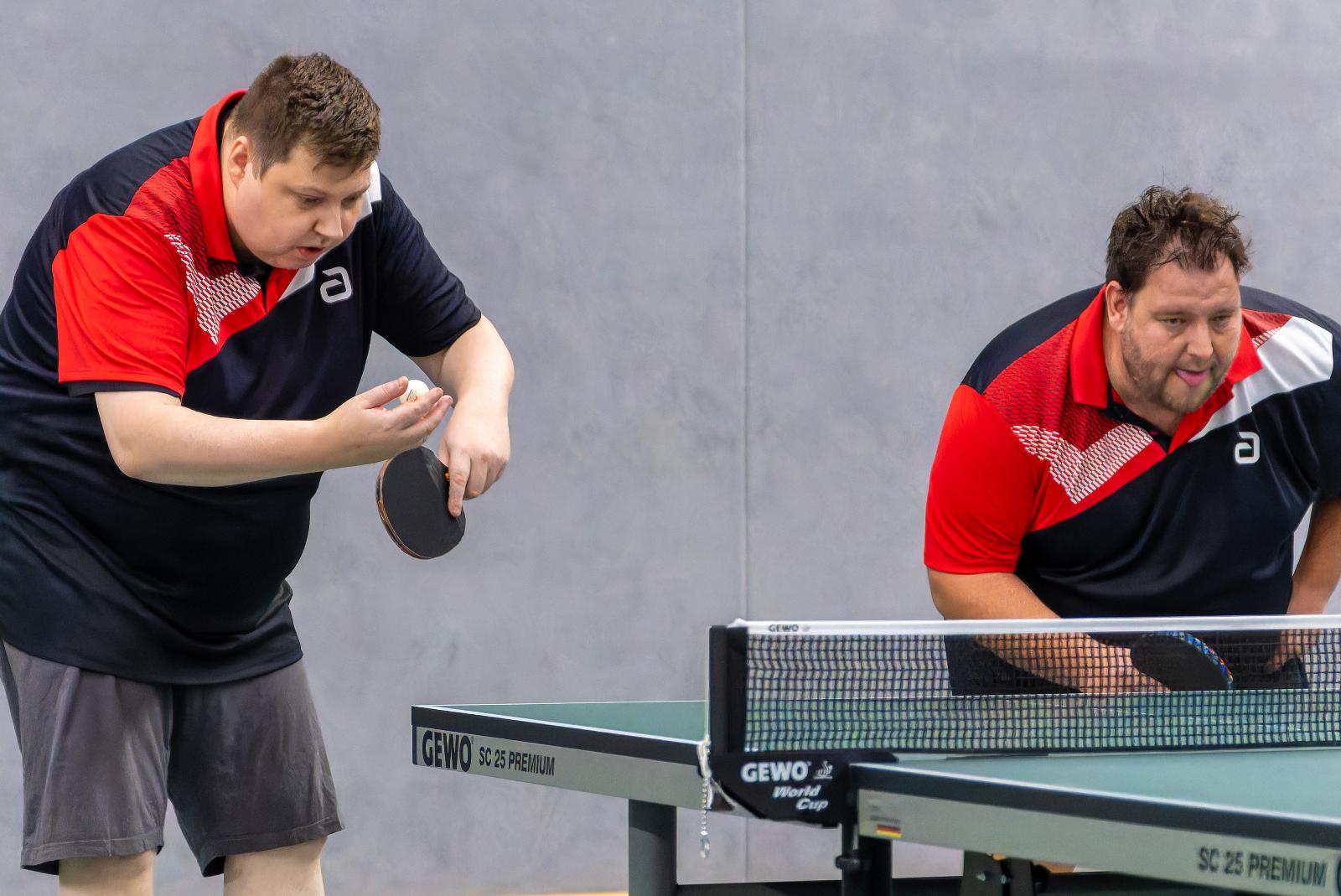 Thorsten Viebahn (links) legte in der Hinrunde der Tischtennis-Bezirksliga eine Serie von 17:3 Siegen in den Einzeln hin. © Jungeblut