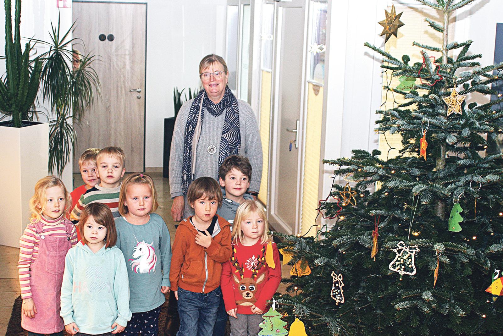 Acht Kinder im Alter zwischen fünf und sechs Jahren der Kita Ditzum haben dabei geholfen, den Tannenbaum im Eingang des Geschäftsgebäudes des Ökostrom-Anbieters ProEngeno in Nendorp in einen wunderbaren Weihnachtsbaum zu verwandeln.