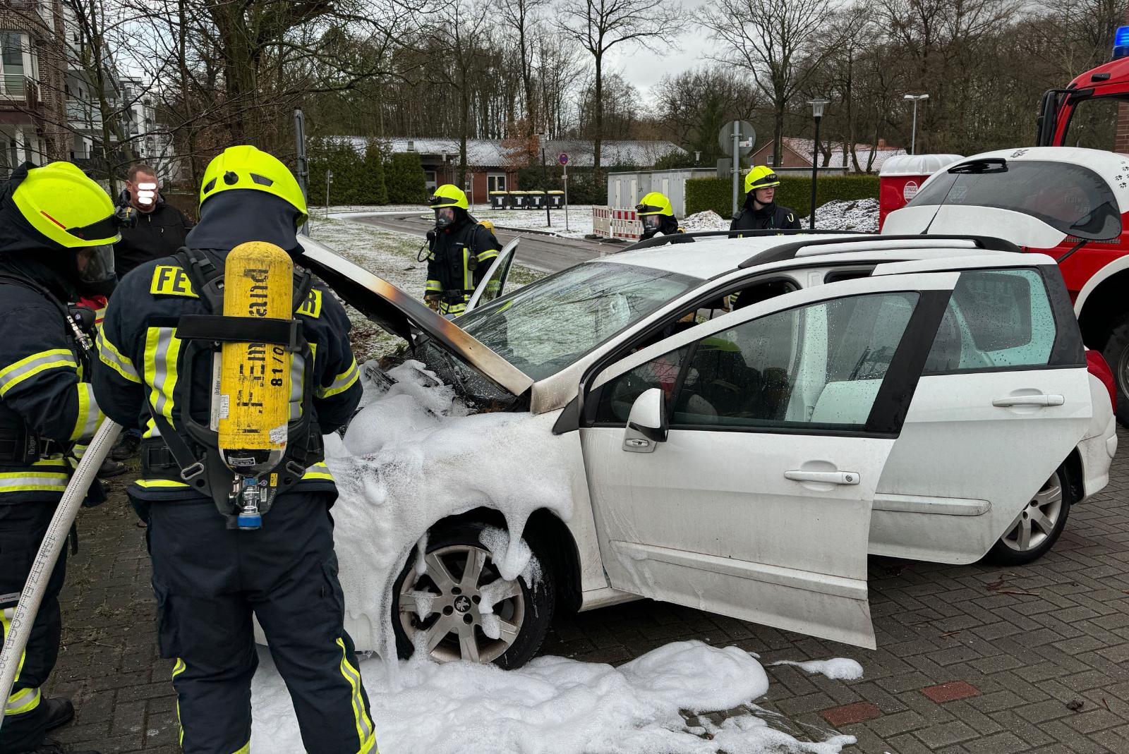 Durch die eingesetzten Feuerwehrleute der Ortsfeuerwehr Papenburg Untenende konnten die Flammen wenige Minuten nach dem Eintreffen endgültig erstickt werden. Mithilfe eines Schaumteppichs wurden die Flammen erstickt, die Einsatzstelle wurde nach rund einer halben Stunde an die Polizei übergeben. Am brennenden Pkw entstand durch den Brand- und Rauchschaden vermutlich hoher Sachschaden, Personen kamen nicht zu Schaden. Die Brandursache war zunächst unklar.