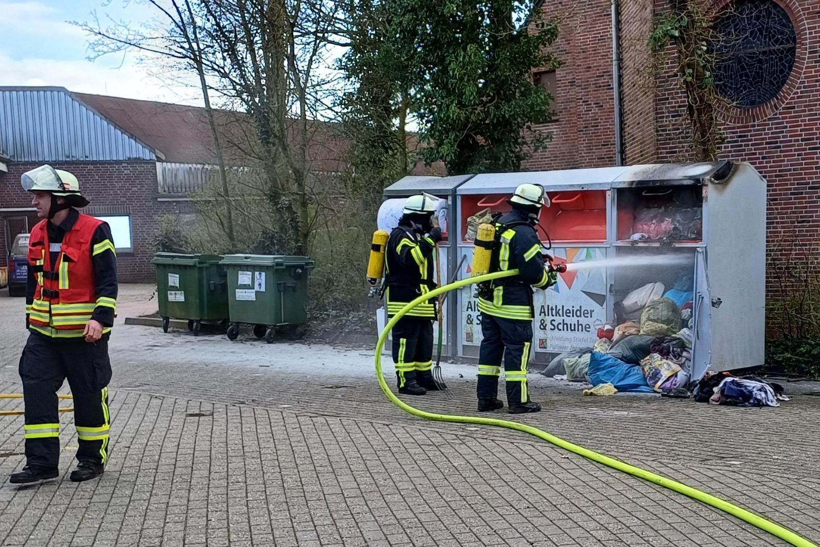 Die Feuerwehr Weener wurden heute um 16.30 Uhr zu einem Brandeinsatz alarmiert. An der Kirchhofstraße in Weener war auf einem Parkplatz ein Kleidercontainer in Brand geraten.