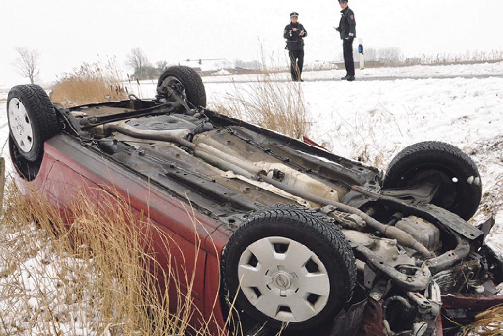 Zwölf Unfälle durch Glätte - Laster rutscht bei Midlum in Graben