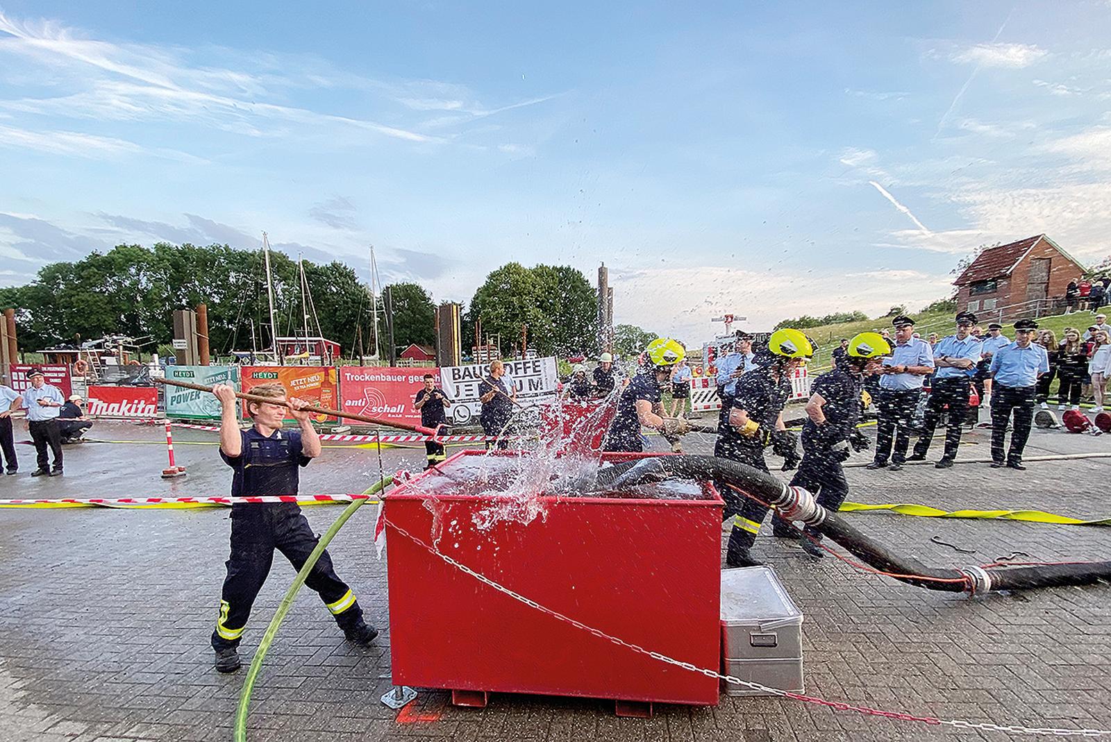 Einige Besucher des Feuerwehr-Schnelligkeitswettbewerbs am Jemgumer Hafen befürchteten Freitagabend beim Start um 18 Uhr, dass die Veranstaltung buchstäblich »ins Wasser gefallen« sei und abgesagt werden würde.