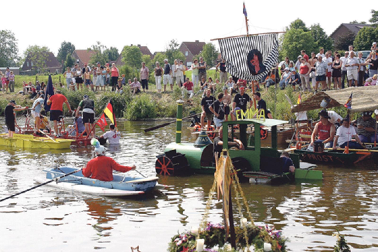 Alle drei Jahre bittet Pogum zum Dorffest. In diesem Sommer wartet die Neuauflage mit einer besonderen Attraktion auf: Das Badewannen-Rennen - bisher feuchtfröhliches Spektakel in Ditzum - wird erstmals am »Endje van de Welt« ausgetragen.