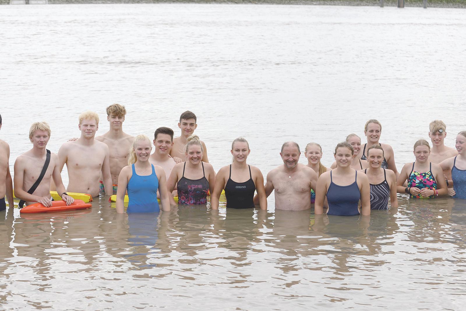 18 Rettungsschwimmerinnen und -schwimmer der DLRG-Ortsgruppe Weener haben sich am Sonntagmittag bei der Jann-Berg-?haus-Brücke in Bingum in die Ems gewagt, um von dort nach Weener zur Schleuse zu schwimmen. Unter der Anleitung von Hans-Dieter Krämer schwammen die Mä...