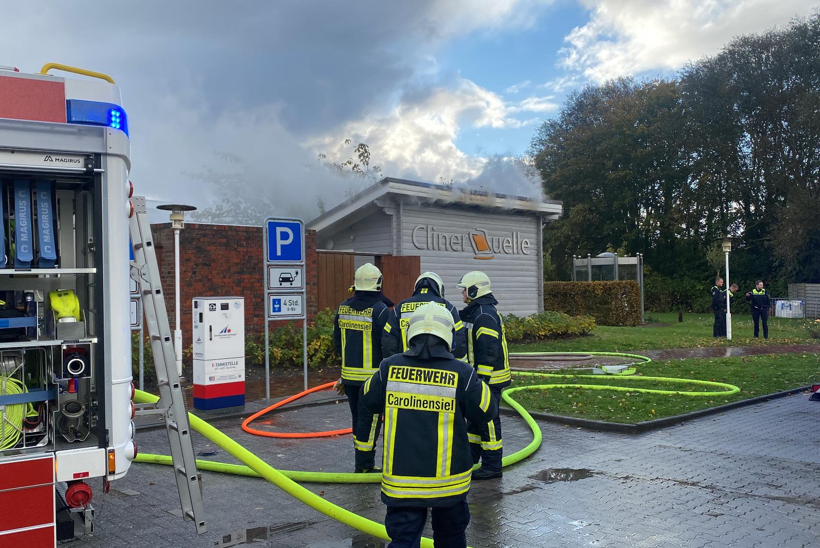 Heute Morgen waren die Einsatzkräfte der Ortsfeuerwehren Berdum, Carolinensiel, Wittmund sowie die Drohneneinheit der Kreisfeuerwehr Wittmund bei einem Saunabrand in der Cliner Quelle in Carolinensiel gefordert.