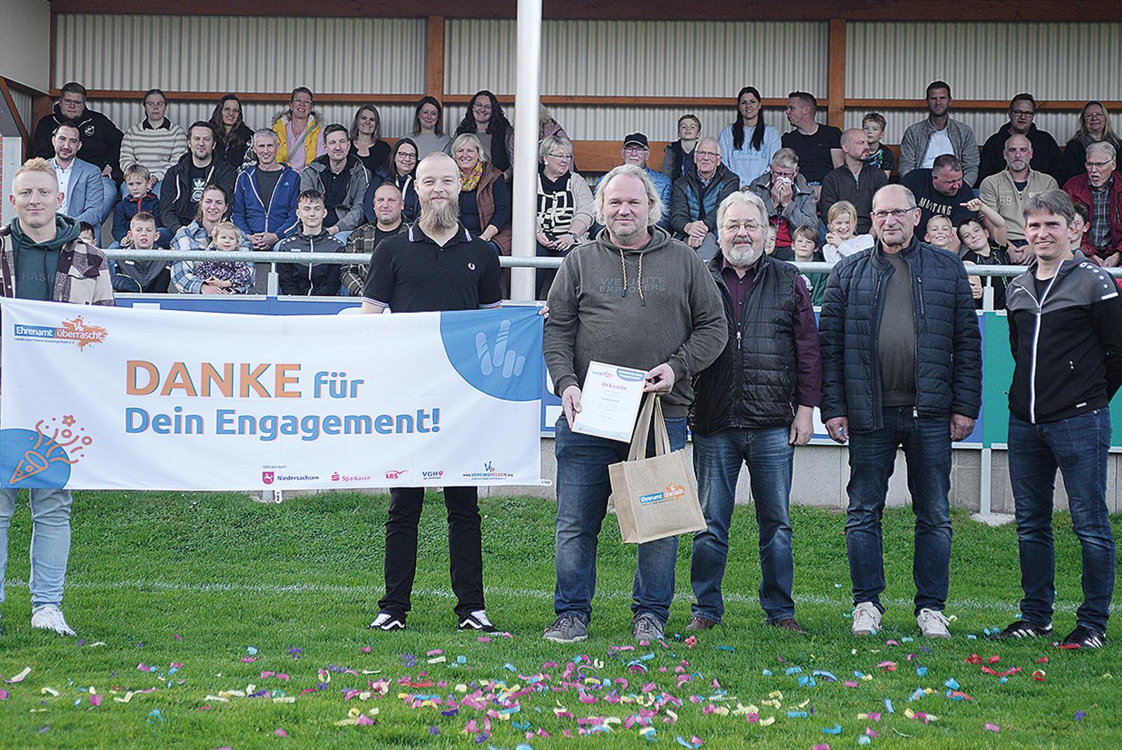 Dennis Siemons aus Stapelmoor packte an bei Tribünenbau, Vereinsheim, Jugendarbeit - Vorstand sorgte für Überraschung